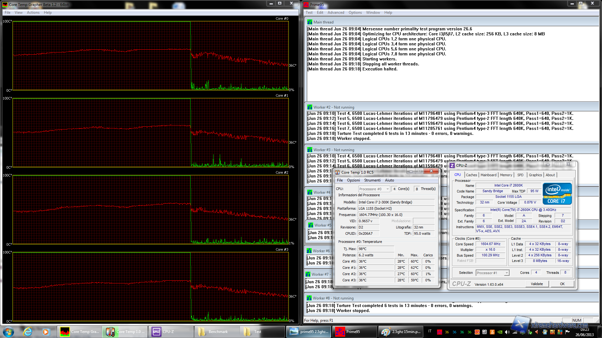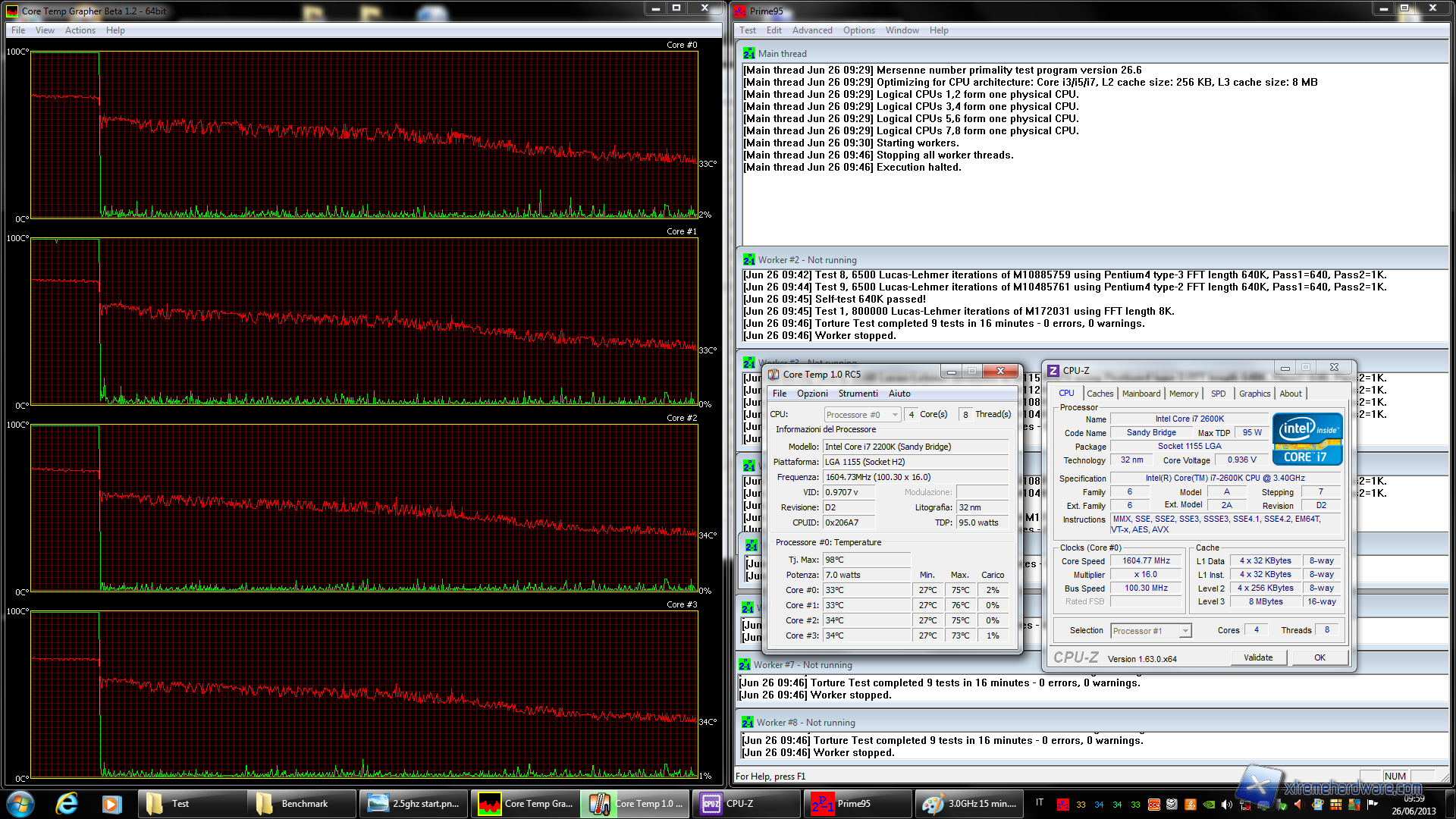 Una volta fermato il test con Prime95 occorono circa 15 min. affinchè le temperature tornino in una situazione di norma, rispetto quindi al caso precedente un tempo circa doppio.