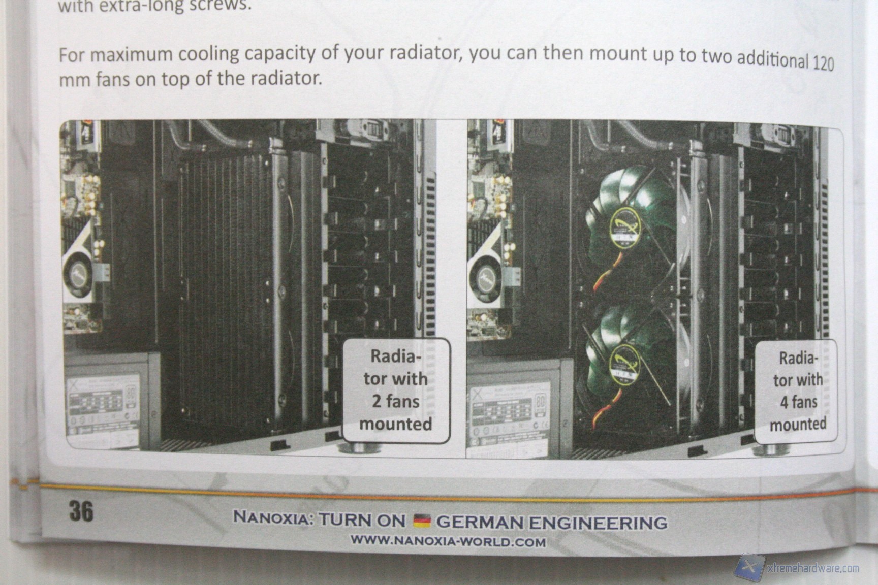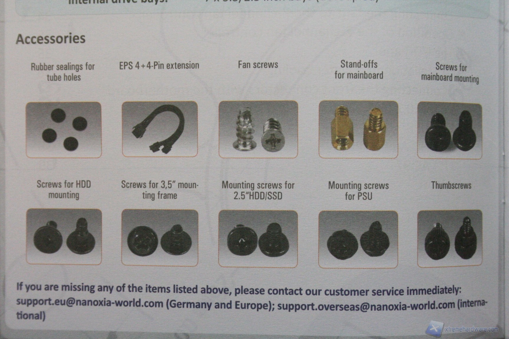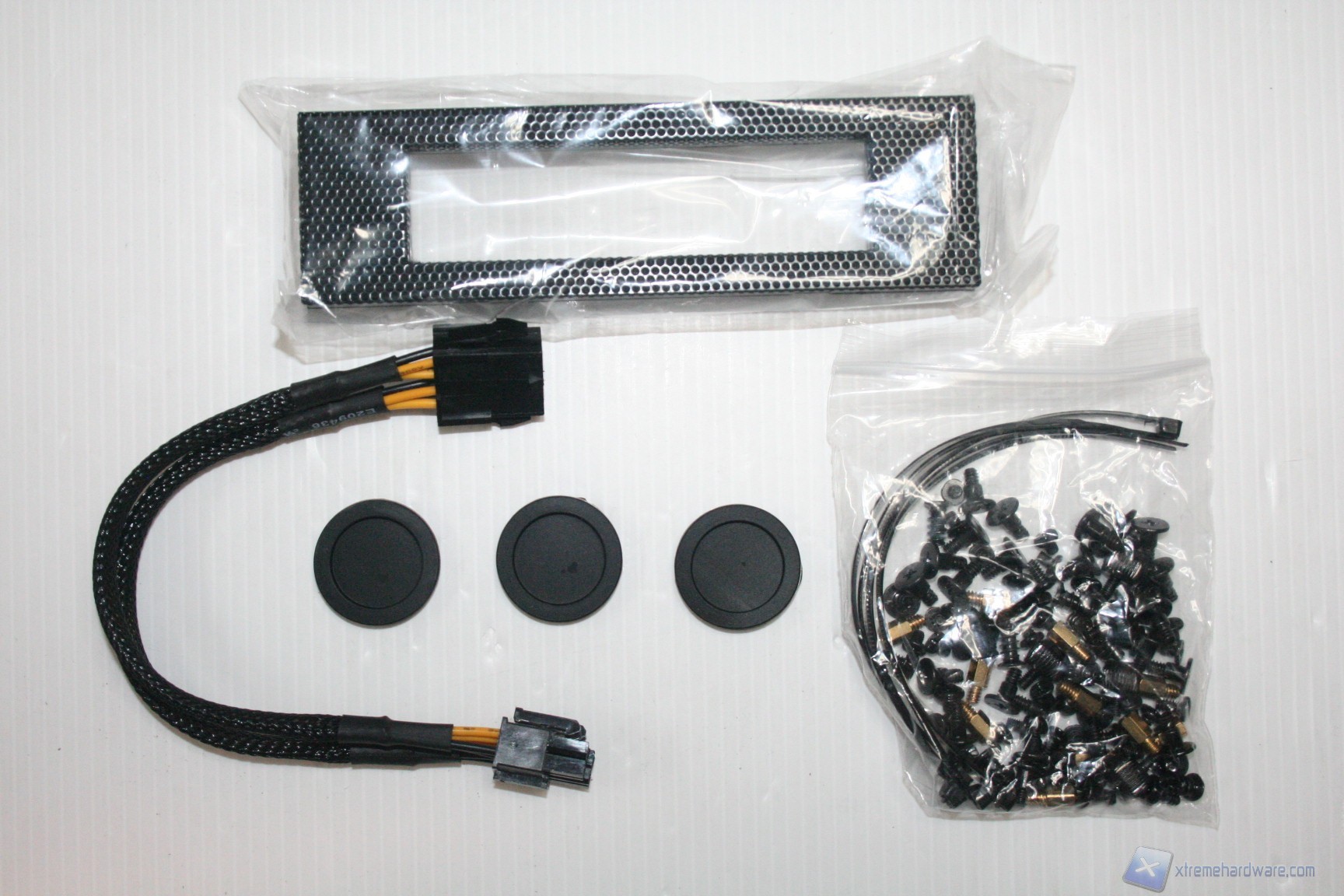 Il bundle in dotazione è buono, data la fascia di prezzo. E’ molto utile la prolunga di alimentazione per il connettore EPS12V, che consigliamo sempre per l’installazione e che quindi Nanoxia ha pensato bene di includere nel cabinet. Oltre a questo c’è un ottimo numero di ventole, di qualità elevata per via del fatto che appunto sono proprietarie; due da 120mm frontali in immissione ed una da 140mm posteriore.