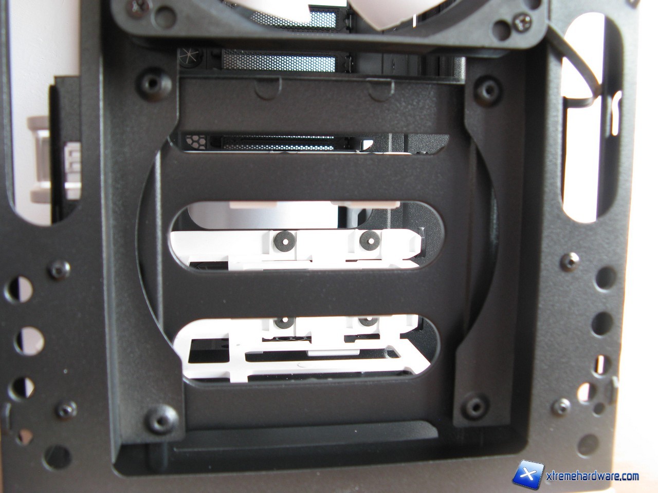 In quanto a ventilazione e, dunque, capacità di offrire un buon raffreddamento ad aria il case è un prodotto davvero ottimo. Sul frontale possiamo facilmente installare due ventole da 120mm, quella inferiore raffredda gli hard disk mentre quella superiore permette di far arrivare aria fresca direttamente alla scheda madre ed alla scheda video; ovviamente nell'eventualità in cui sia stata rimossa la seconda gabbia per gli hard disk.