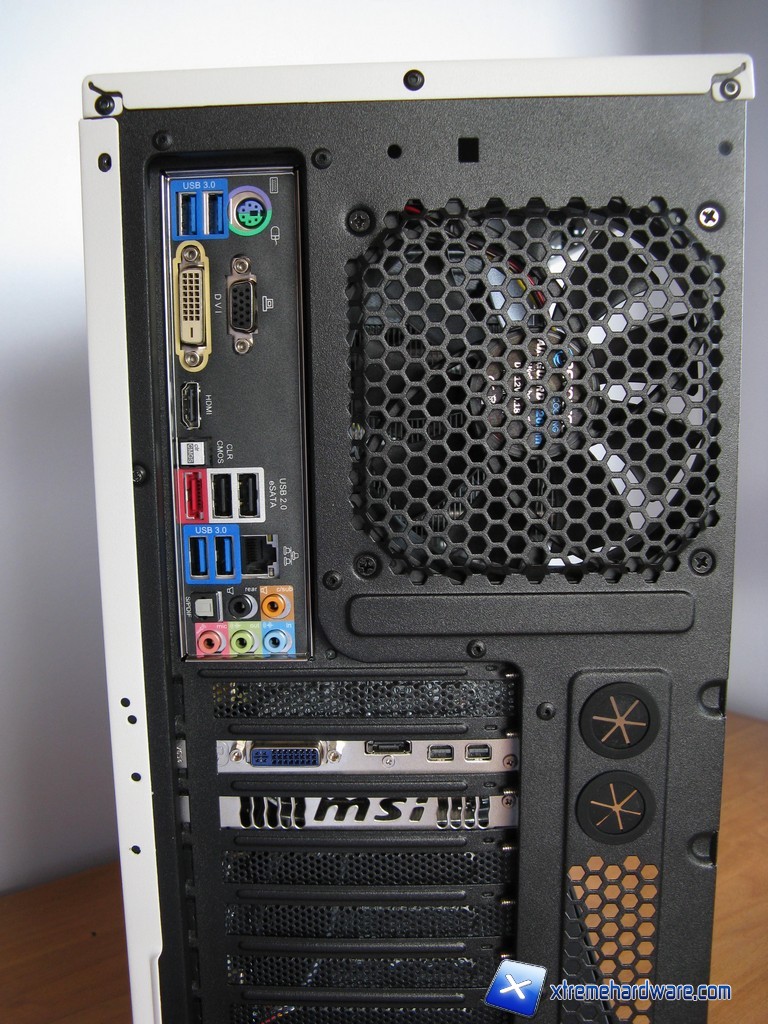 Per quanto riguarda l'estrazione di aria calda possiamo facilmente installare una ventola da 120mm sul retro e due ventole da 120\140mm sul top del case, esse garantiscono un'estrazione ottimale del calore. Troviamo preinstallate una ventola da 120mm in immissione frontale ed una da 120mm in estrazione sul retro. Il flusso è bilanciato e non c'è pertanto una pressione positiva che evita ingresso di polvere dalle feritoie del cabinet. Gli slot PCI sono perforati, ciò permette una migliore areazione, ma anche il rischio di avere un negative loop, ovvero reimmissione dell'aria calda espulsa delle schede video all'interno del cabinet. Sono ovviamente tutte limitazioni a cui possiamo ovviare potenziando la ventilazione in immissione e/o installando filtri antipolvere magnetici sulle feritoie non dotate di ventole. Segnaliamo comunque la presenza di filtri antipolvere sulla paratia laterale, sul fondo del cabinet e sul frontale, pertanto l'unica feritoia sprovvista è quella superiore. Un'ottima dotazione per un cabinet da appena 50€ !