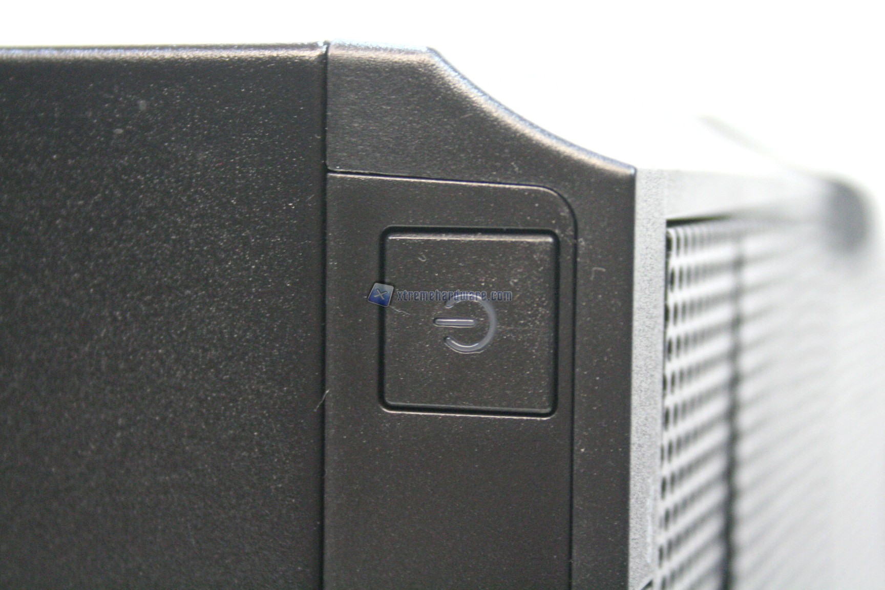 Il case frontalmente, come preventivato poc’anzi, presenta una ventilazione passiva frontale grazie alla presenza di una paratia con fori esagonali, in mesh. Escludendo la presenza dei classici tre slot da 5.25” nella parte superiore, l’unica caratteristica peculiare è la presenza di due protrusioni di plastica, che potrebbero sembrare maniglie, ma che in realtà sono solamente un motivo estetico. In altro, nella porzione superiore, troviamo il pulsante di reset e di accensione.