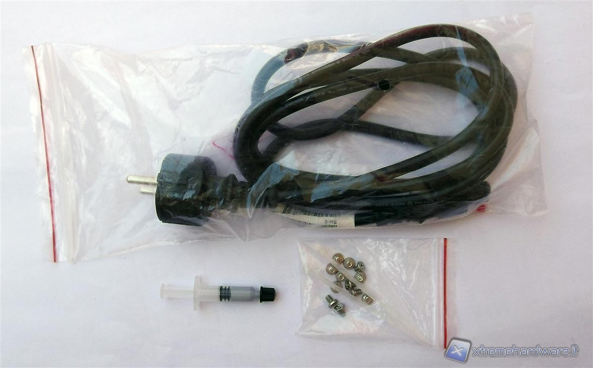 Il bundle comprende un DVD dove troviamo i manuali multilingua, driver ed altre utility. E' corredato anche da diversi manuali rapidi che ne illustrano in maniera davvero dettagliata l'installazione, la rimozione del dissipatore ed altre parti. Tutto davvero ben realizzato e curato nei minimi dettagli. Troviamo inoltre il cavo di alimentazione Power AC da collegare da una parte all'alimentatore ed un'altra parte alle rete elettrica domestica.