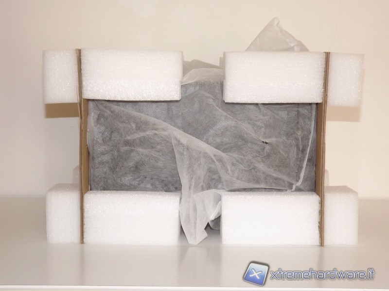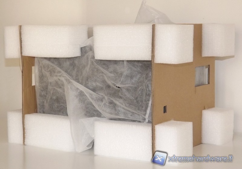 Il cabinet è protetto da un involucro che fa uso di varie parti come polistirolo, cartone, che proteggono dagli urti durante il trasporto e mantengono integro il prodotto fino al consumatore finale.
