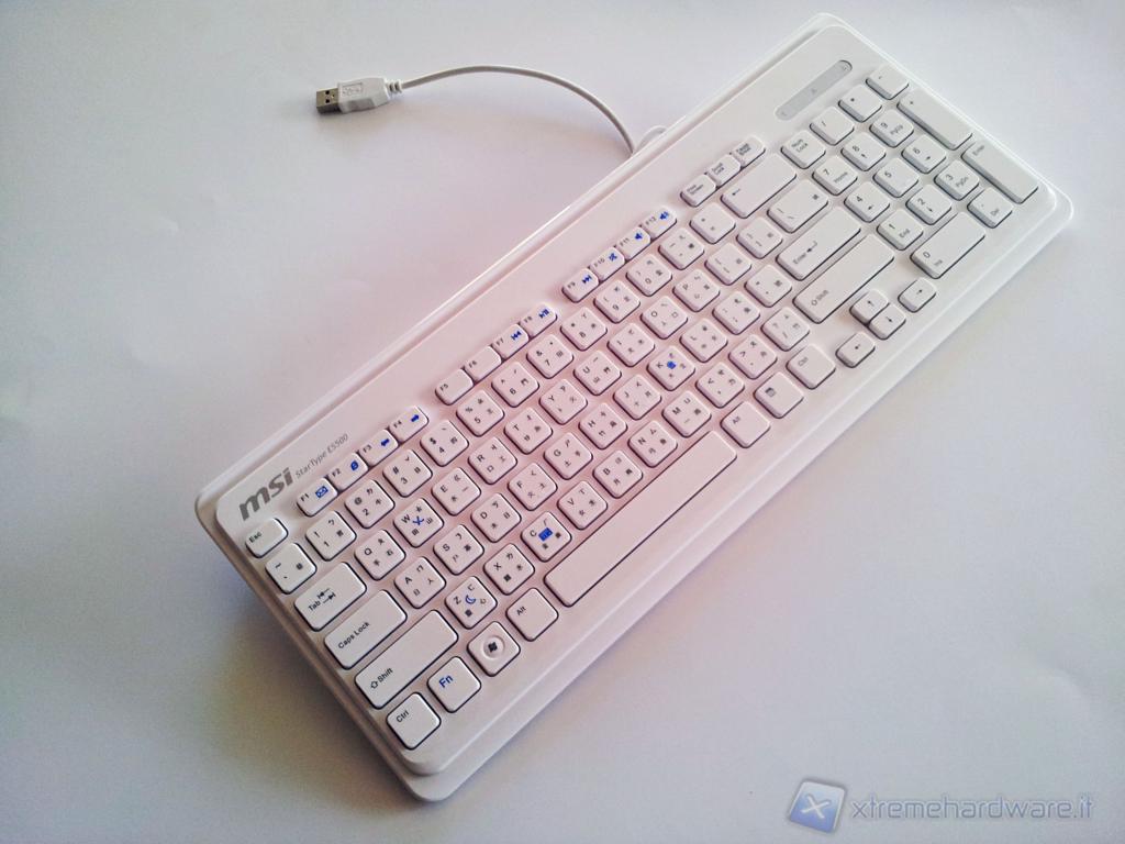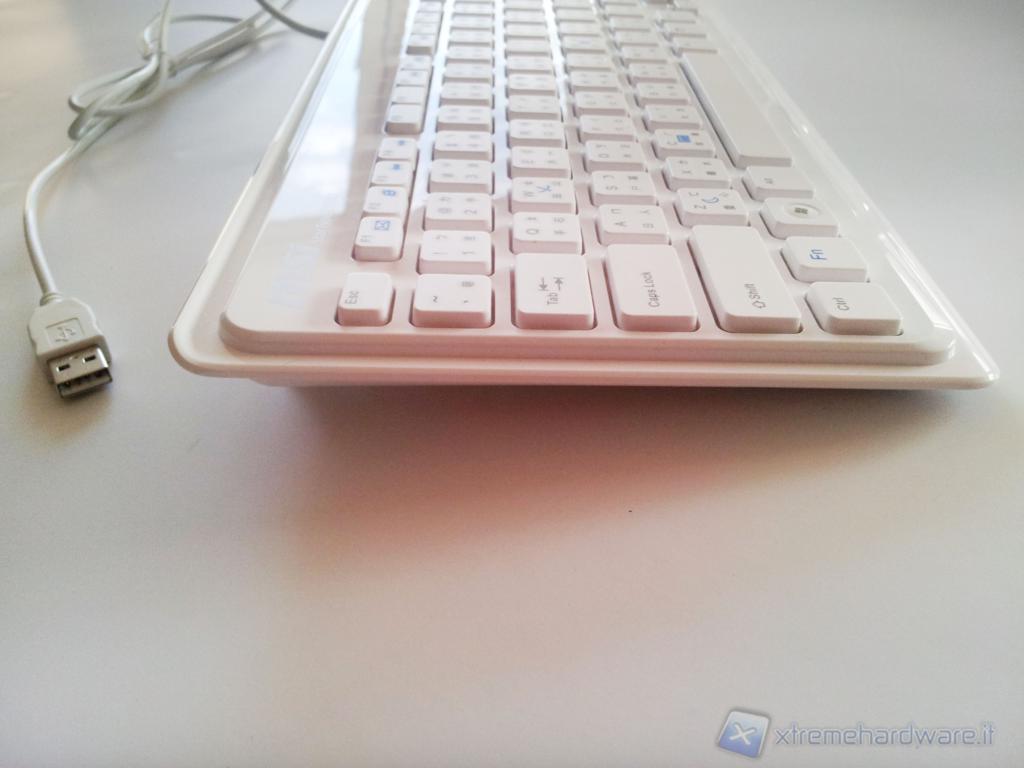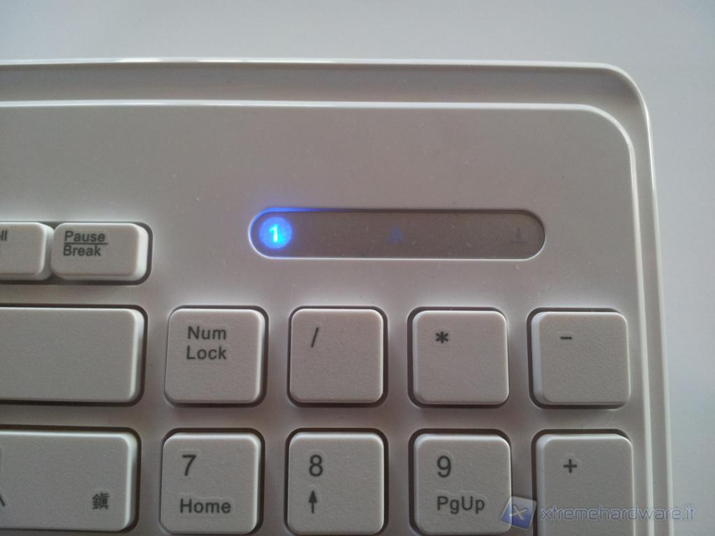 La tastiera giunta in redazione presentava, oltre ai caratteri dell'alfabeto latino anche quelli Kanji, inoltre il layout non era ITA in quanto i caratteri speciali non rispecchiavano quelli delle comuni tastiere italiane. La tastiera è di colore bianco, molto compatta e sottile, completa di tastierino numerico e con un ampio spazio tra i tasti che presentano una corsa corta. Il meccanismo di pressione non è molto preciso; non sono presenti tasti di funzioni speciali tuttavia, tramite l'utilizzo del tasto "FN", è possibile effettuare diverse operazioni premendo altri tasti contraddistinti da simboli blu, sarà possibile quindi attivare\disattivare il wireless premendo FN+W, avviare la calcolatrice con FN+C, impostare il PC in Standby tramite FN+Z etc.