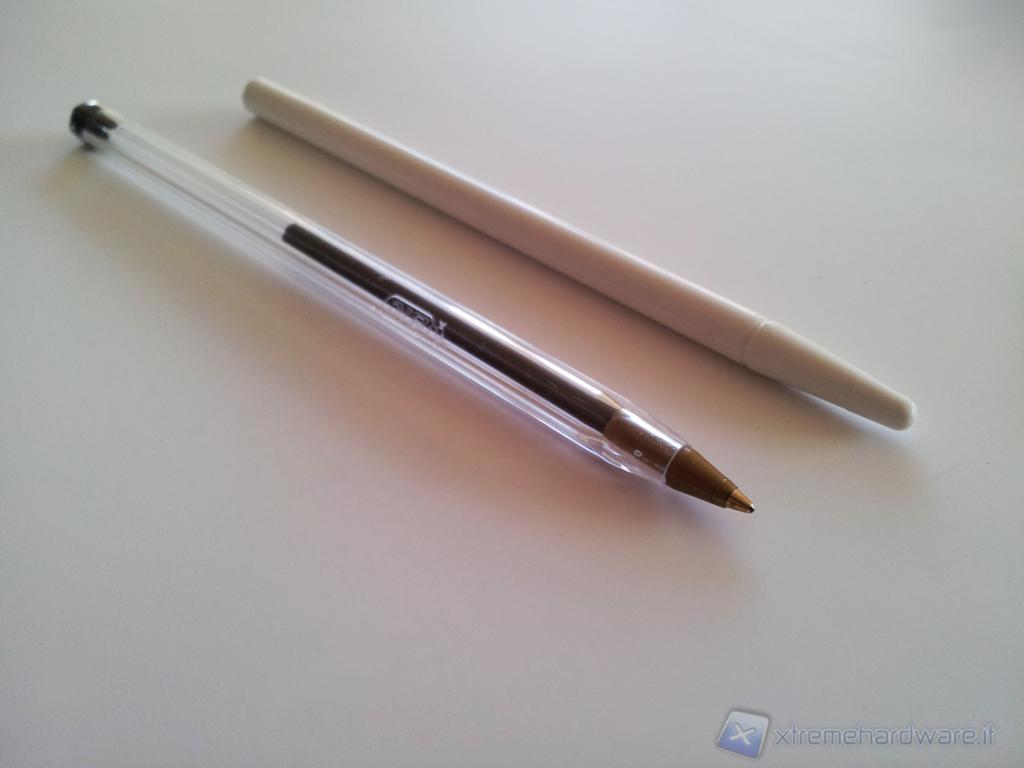 Il pennino ha una forma molto simile auna classica penna ed è completamente in plastica, non è capacitivo e quindi può essere sostituito da qualsiasi oggetto adatto e ovviamente dalle mani.