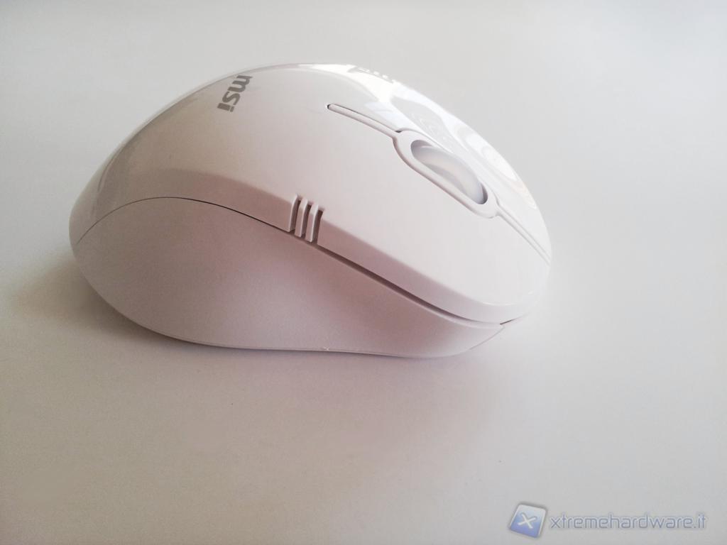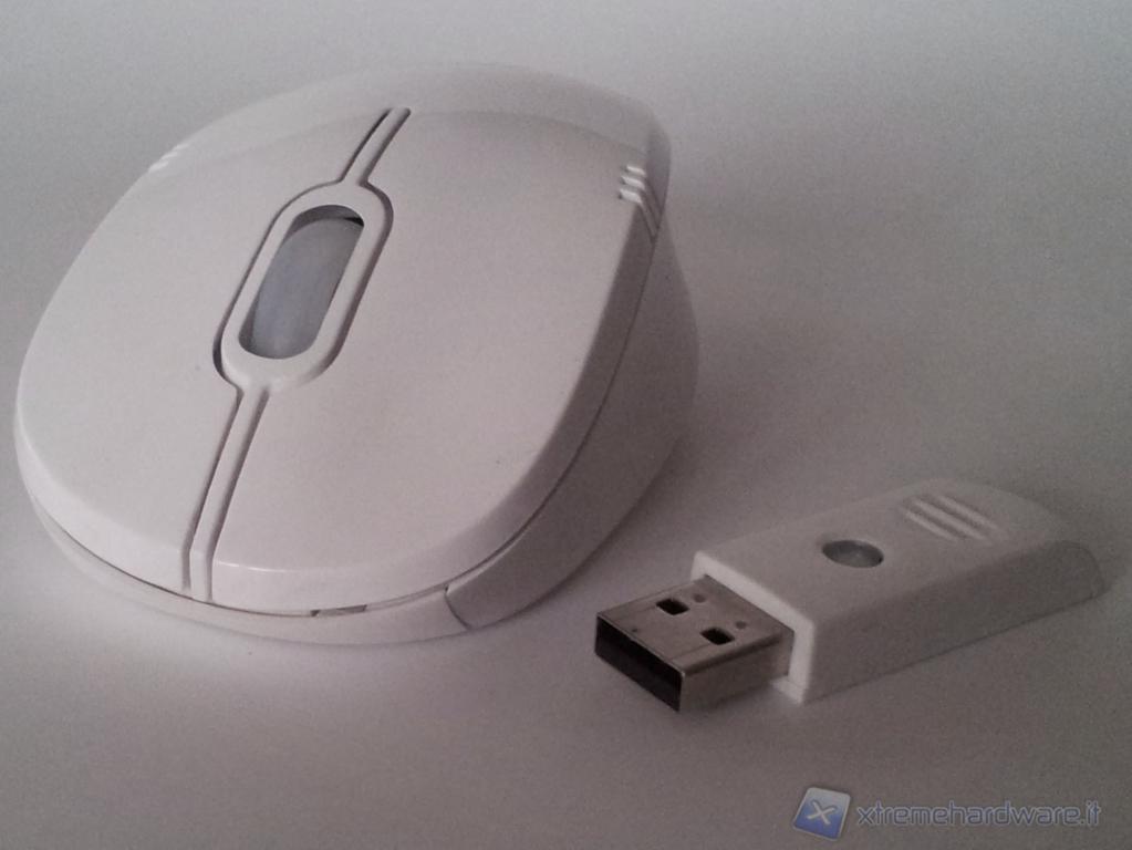 Anche il mouse, come la tastiera, è completamente bianco e molto compatto, può essere facilmente utilizzato sia da mancini,sia da destroidi, ma è sprovvisto di tasti aggiuntivi. La rotellina, così come i tasti, non è molto precisa al contrario del sensore wireless, veloce e reattivo.