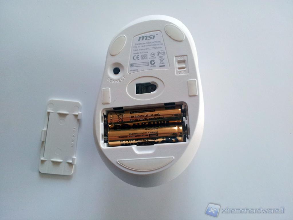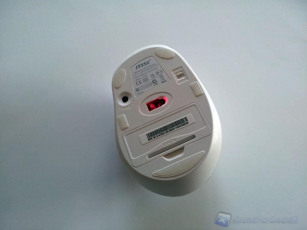 La versione giunta in redazione presentava un collegamento wireless ma anche in questo caso non possiamo confermarne la presenza al momento della commercializzazione. Per funzionare il mouse ha bisogno di due batterie presenti nella confezione, basterà rimuovere il coperchio situato alla base del mouse per inserirle. E’ inoltre presente un piccolo pulsante per la connessione (necessario solo al primo utilizzo) e un comodo switch per accendere\spegnere il mouse, una presenza molto importante dato che le batterie non sono ricaricabili.