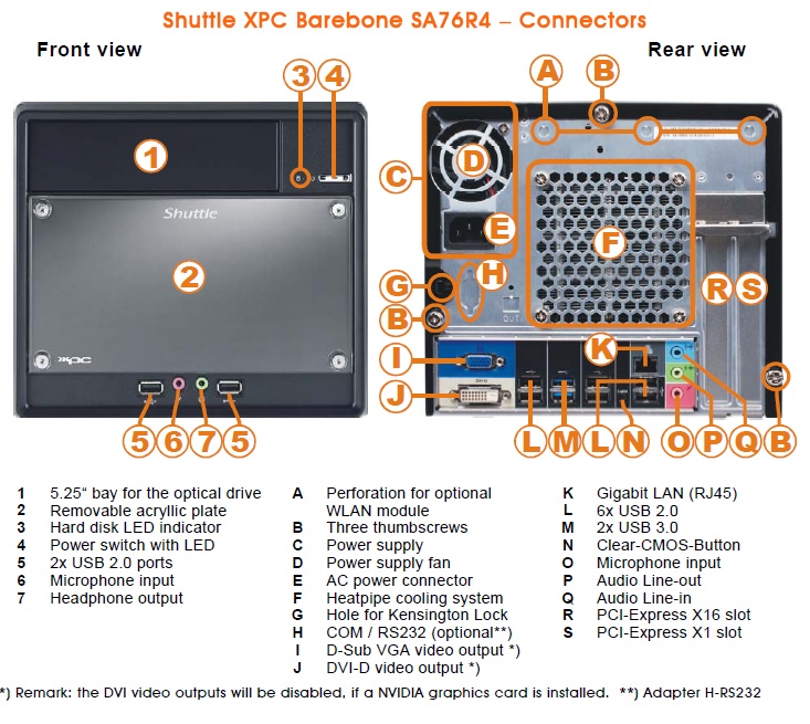 Come abbiamo già avuto modo di capire, le specifiche tecniche di questo sistema mini PC prodotto da Shuttle si attestano su ottimi livelli qualitativi, disponendo di una ricca dotazione di interfacce. Per semplicità riportiamo gli schemi tecnici che riassumono le caratteristiche: