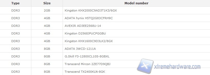 Lo Shuttle SH87R6 è davvero molto completo sotto il punto di vista delle connessioni disponibili. Come accennavamo la scelta dell’hardware da installare spetta a noi ma Shuttle per garantire la massima compatibilità tra i vari componenti preinstallati da lei stessa, quali Mainboard, alimentatore e dissipatore, ha stilato alcune tabelle guida in modo da assicurarci una compatibilità al 100% con l’SZ87R6. Di seguito trovate la lista completa delle memorie supportate:
