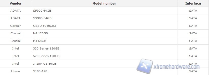 Di seguito trovate la lista degli SSD supportati: