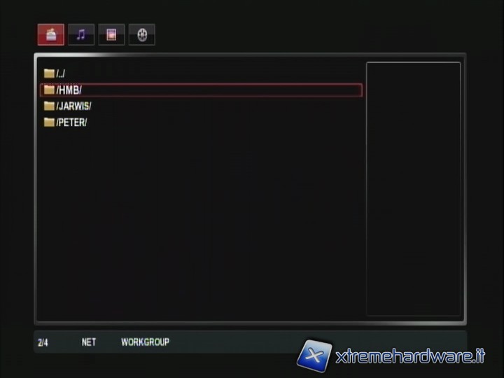 queste Queste tre voci del menù servono per raggiungere i file da riprodurre, i cui elenchi poi vengono visualizzati per categorie (audio, video ecc..), visibili in alto e selezionabili tramite i tasti DESTRA e SINISTRA sull'anello centrale del telecomando.