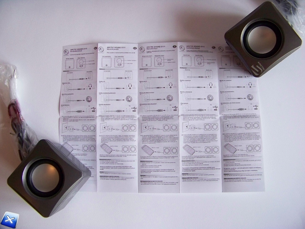 Tolti i cartoni protettivi, notiamo come Arctic abbia tenuto la dotazione al minimo, infatti, troviamo nella confezione i due speaker e il manuale d’istruzioni.