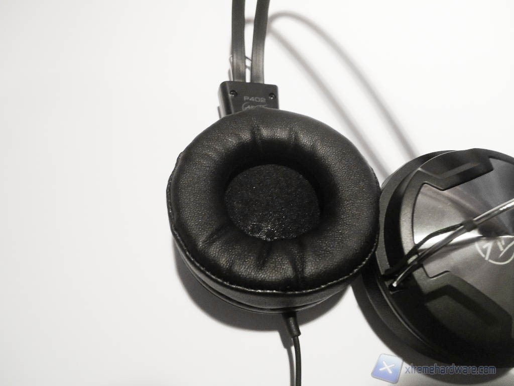La prima cosa che ci risalta all’occhio è il tipo di finitura esterna per i padiglioni. Il materiale utilizzato è plastica nera ricoperta da un materiale che simula bene l’alluminio spazzolato, dando quel tocco di eleganza che in questi headphones sta sempre bene. La loro forma è rotonda e presentano, oltre alla finitura in alluminio spazzolato, anche delle rientranze verso il centro dei padiglioni per dare un po’ di aggressività e stile al tutto.