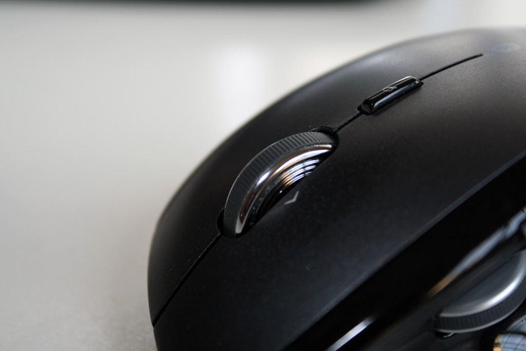Un'ulteriore rotellina che troveremo subito sotto il pollice potrà essere premuta avanti, indietro o all'interno, permette di scorrere tra le finestre di Windows attraverso il Flip 3D di Windows 7 o Vista o il Document Flip di Windows XP. Subito sopra questa rotellina sono presenti due tasti che consentono di navigare avanti o indietro nel browser. L'ultimo tasto veloce che è presente sul mouse è il tasto "ricerca", situato subito sopra la rotellina principale. Cliccandolo, il testo selezionato verrà inserito direttamente nella casella del nostro motore di ricerca predefinito e avvierà la ricerca automaticamente. Molto utile nella lettura dei documenti!