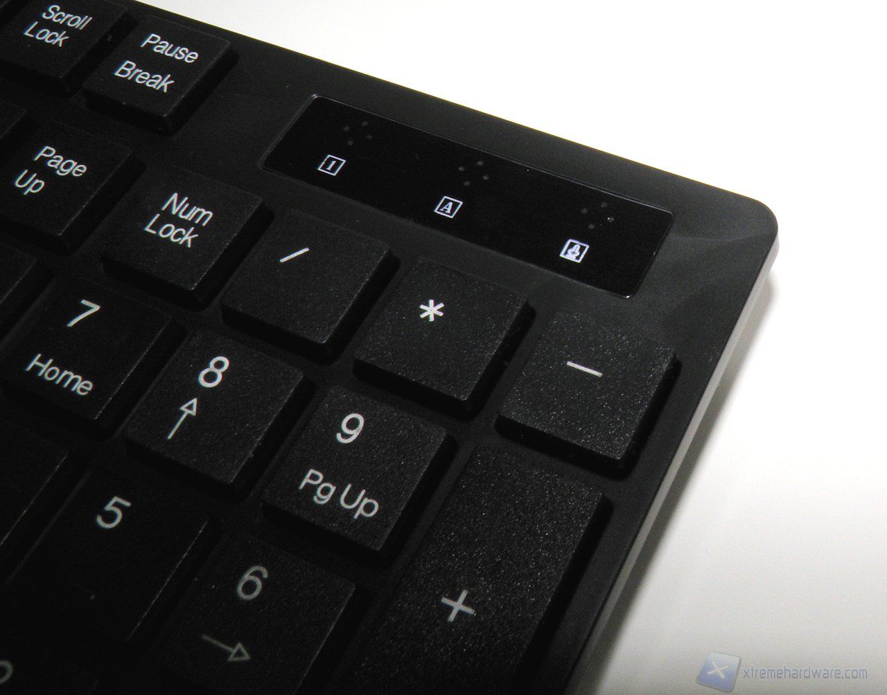 Nella parte alta sono presenti i LED di stato, per il Num Lock o il Caps Lock ad esempio.