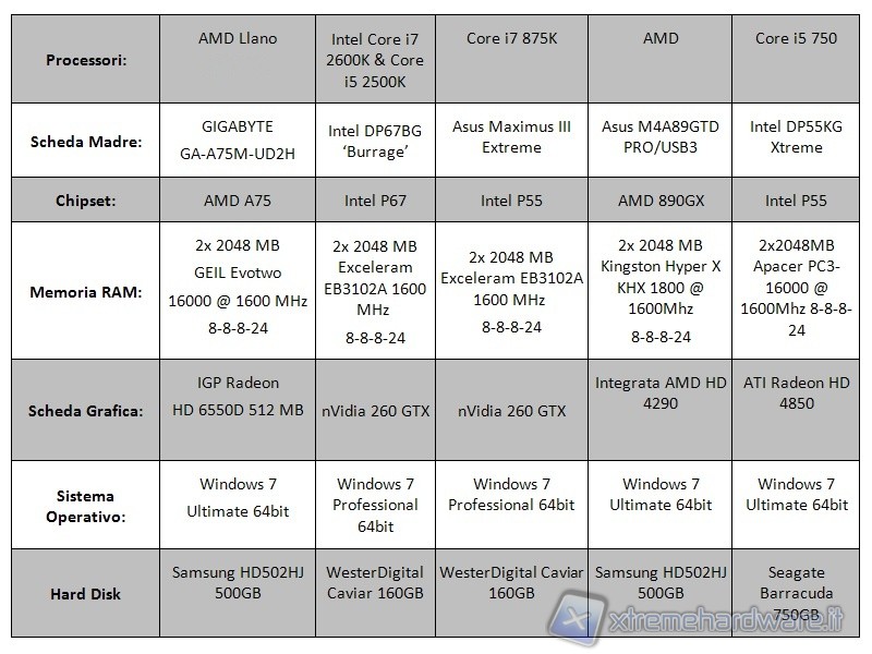 Di seguito riportiamo la tabella contenente le specifiche tecniche del sistema utilizzato per effettuare I test del processore.