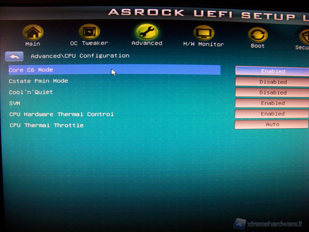 In questa sotto-categoria possiamo impostare parametri relativi alla CPU installata come ad esempio il Cool’n’Quet, il CPU Harware Thermal Control ed altre impostazioni.