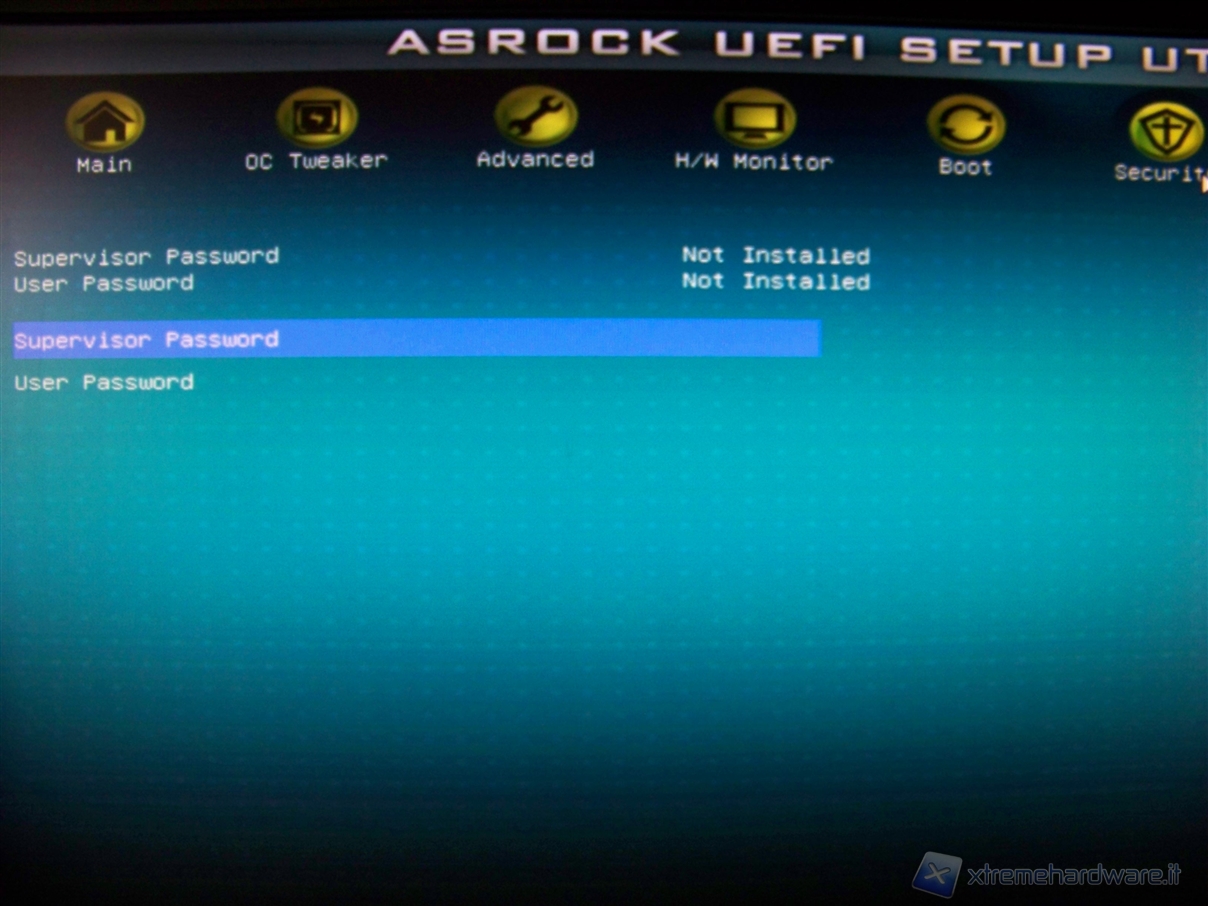 Infine, nella sezione “Security” possiamo settare la password di accesso al bios ed al sistema.