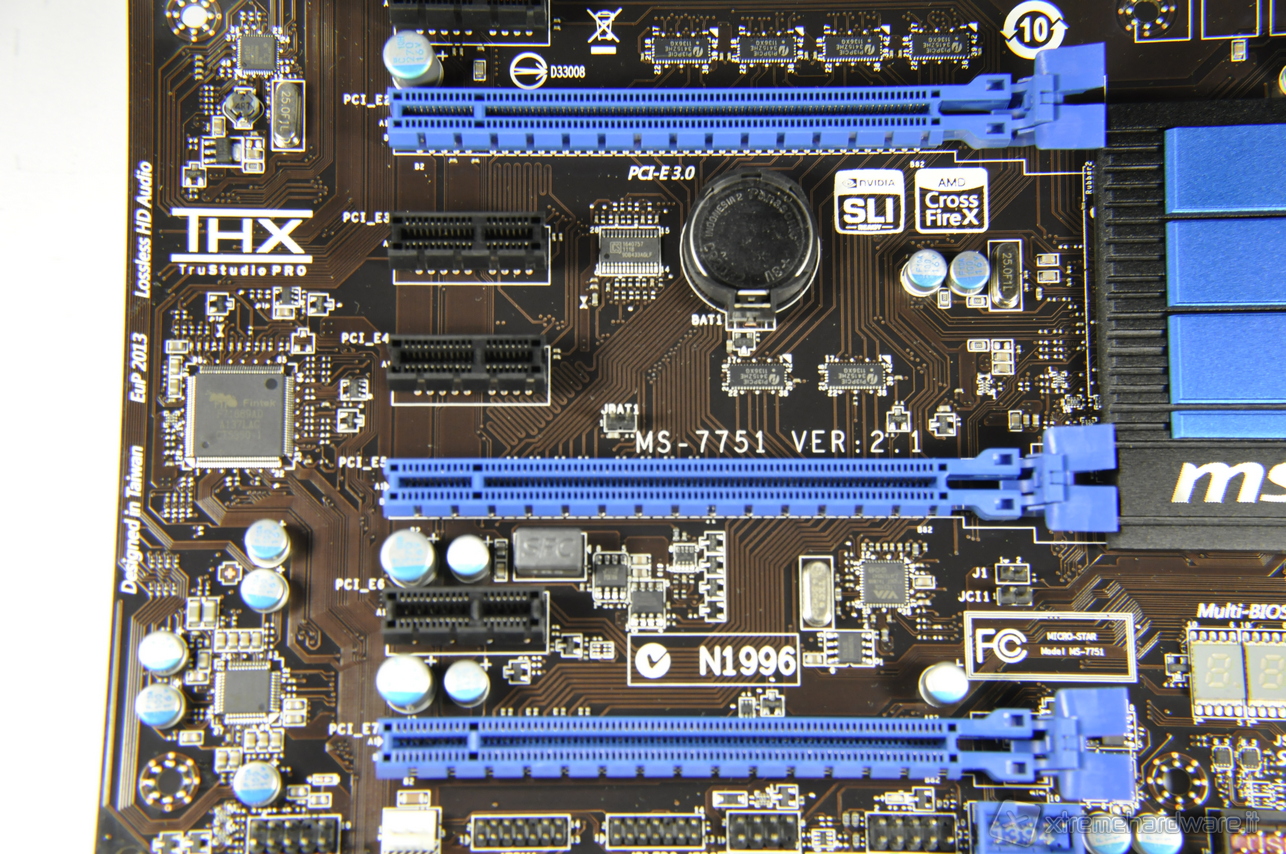 Il numero di slot d’espansione beneficiano del nuovo standard PCI Express 3.0. Tre sono meccanicamente ed elettricamente compatibili con lo standard x16, mentre i restanti 4 (neri) sono a velocità x1.