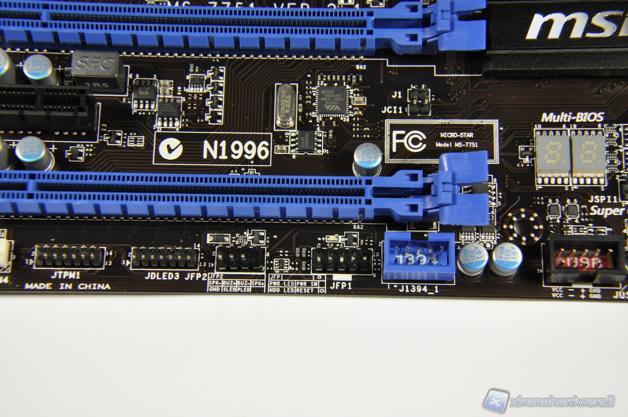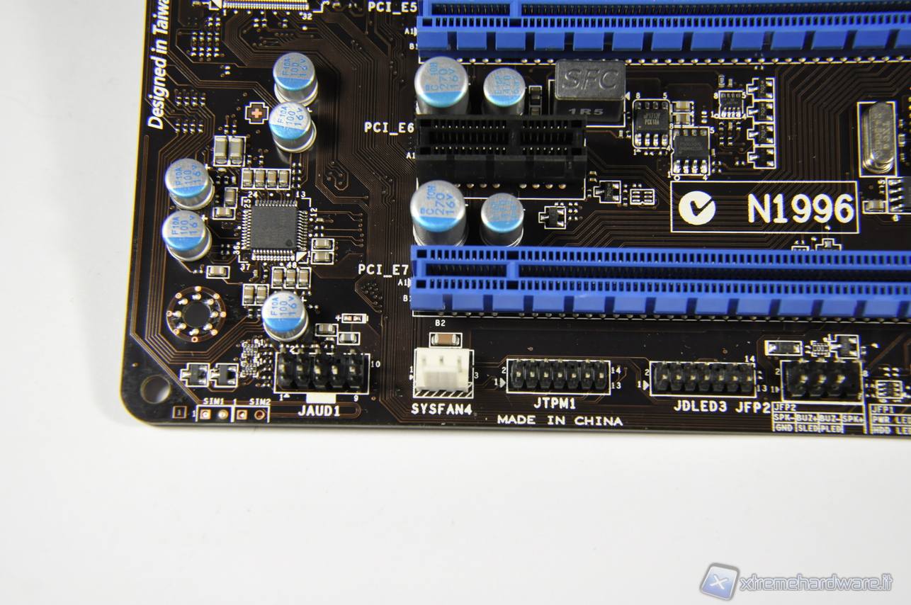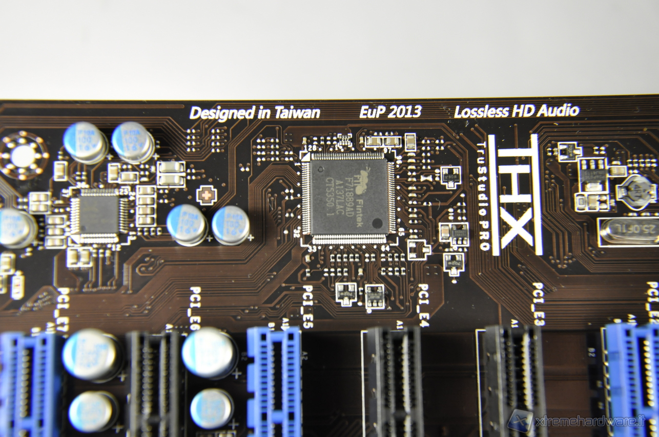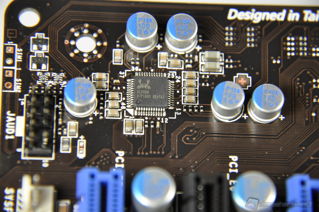 Dalle macro risaltano il chip Fintek F71889AD dedicato a numerose funzioni di monitoring ed il chip Audio Realtek ALC898 che permette di realizzare un sistema Hi-Fi multicanale fino ad un massimo di 8 canali (7.1) in alta definizione e conforme alle specifiche Azalia 1.0.