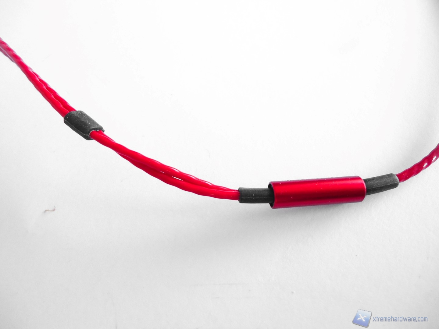 Sul cavo troviamo un corpo metallico con stampato al di sopra il logo dell’azienda da cui il cavo si sdoppia per arrivare ai due auricolari. Al centro del troviamo un piccolo sdoppiatore a Y metallico, che divide il cavo principale in due ulteriori cavi che raggiungono i rispettivi auricolari, inoltre è presente un piccolo oggetto di gomma che ci permette di regolare l’altezza del punto da dove partirà la biforcazione dei due cavi.