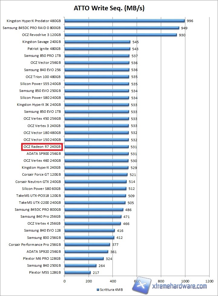 A seguire i grafici con i valori ottenuti dall''OCZ Radeon R7 da 240GB: