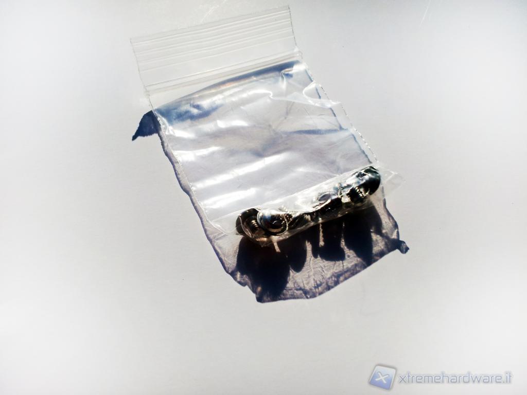 La confezione contenente il drive, le viti e l'adattatore è molto elegante; inoltre, protegge dagli urti grazie all'utilizzo di una spugna semi-morbida avvolgente, in tinta con le parti in cartone.