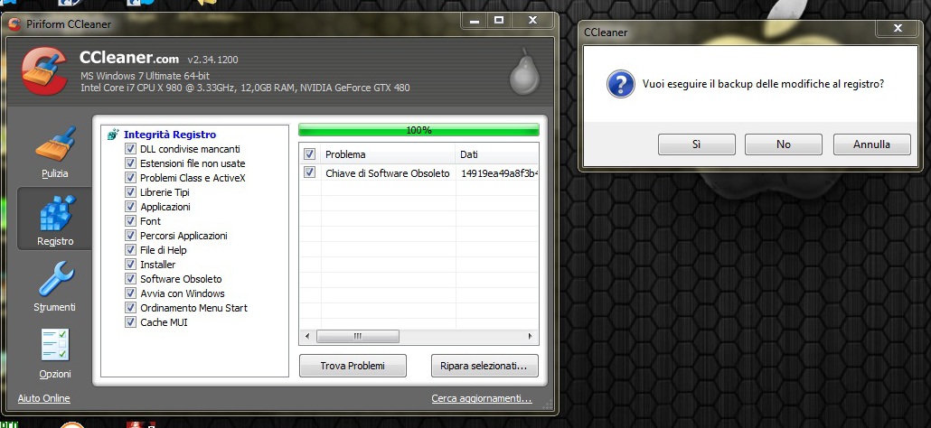 Con questo programma, dobbiamo procedere alla pulizia del registro.